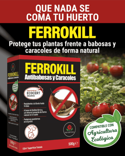 FERROKILL es un antibabosas y caracoles ecológico diseñado para el control eficaz de moluscos en cultivos hortícolas, plantas ornamentales y jardines particulares. Actúa de manera discreta y efectiva, ayudando a mantener las plantas protegidas sin generar residuos visibles ni afectar el equilibrio del entorno.